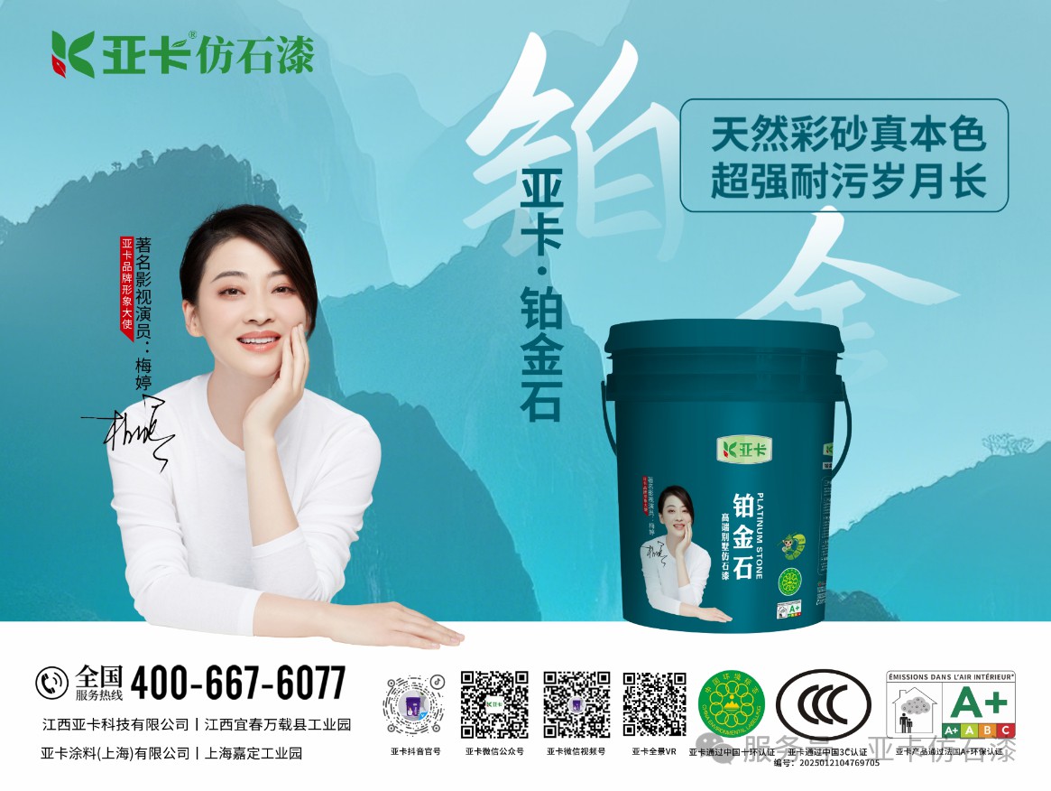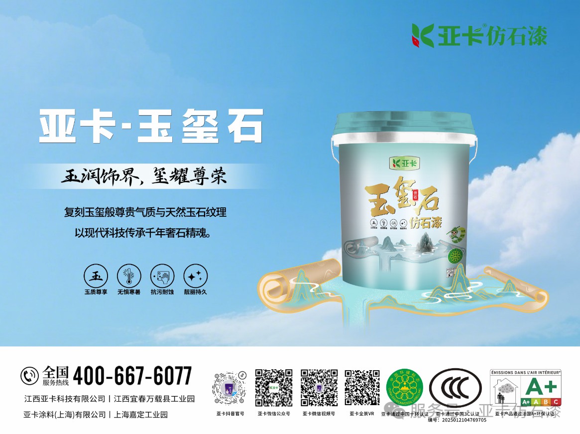 亞卡在產(chǎn)品研發(fā)方面聚焦鄉(xiāng)鎮(zhèn)自建房市場,對仿石漆系列產(chǎn)品持續(xù)進(jìn)行更新迭代,突破天然彩砂調(diào)色難題,實(shí)現(xiàn)大理石紋理1:1還原,推出高品質(zhì)的亞卡鉑金石仿石漆;順應(yīng)國潮回歸的新時(shí)尚,在研發(fā)中融入玉石粉工藝,復(fù)刻故宮城墻質(zhì)感,亞卡玉璽石仿石漆于2025年4月全新推向市場。