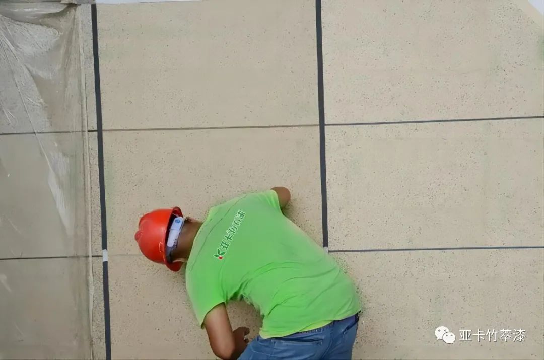 但考慮到石材的局限性,仿石漆分格可以不用在陰陽(yáng)角部位進(jìn)行分格,建議在窗框與墻面接縫處進(jìn)行分格,并注意盡量間距均勻,不要出現(xiàn)小塊、小邊的現(xiàn)象。