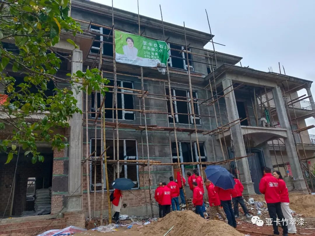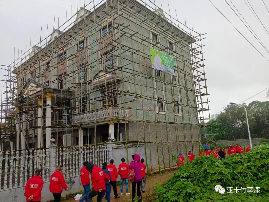 亞卡仿石漆從業(yè)人員冒雨走訪“亞卡五星業(yè)主”家