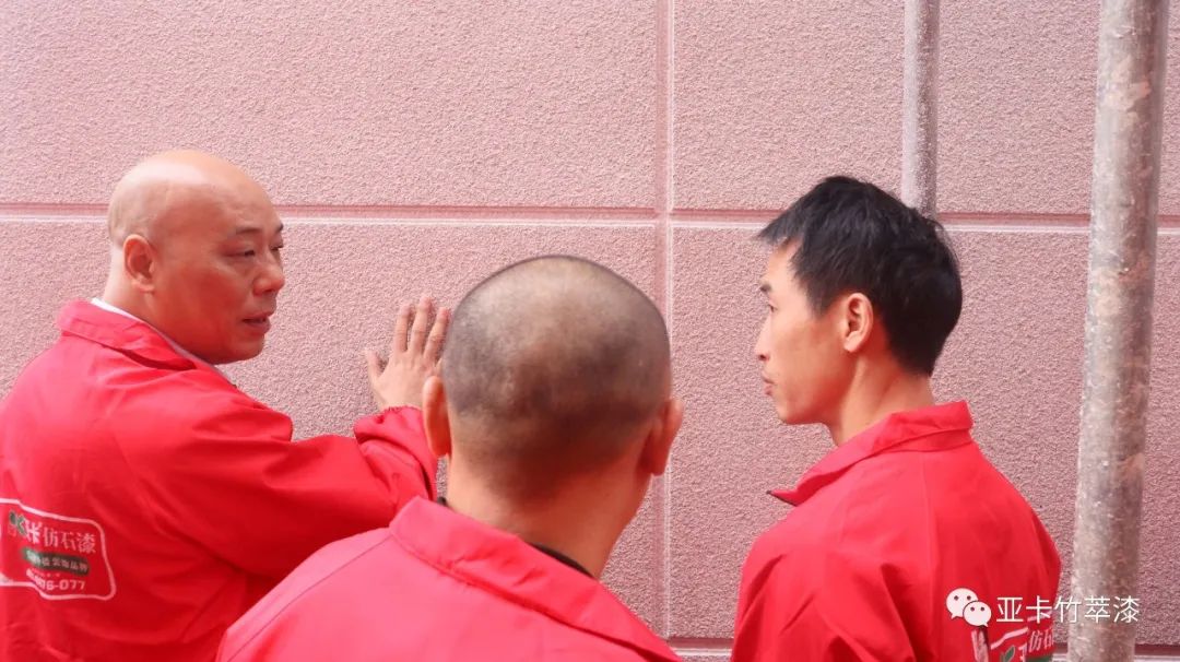 亞卡仿石漆從業(yè)人員在實地觀摩后進行經(jīng)驗交流
