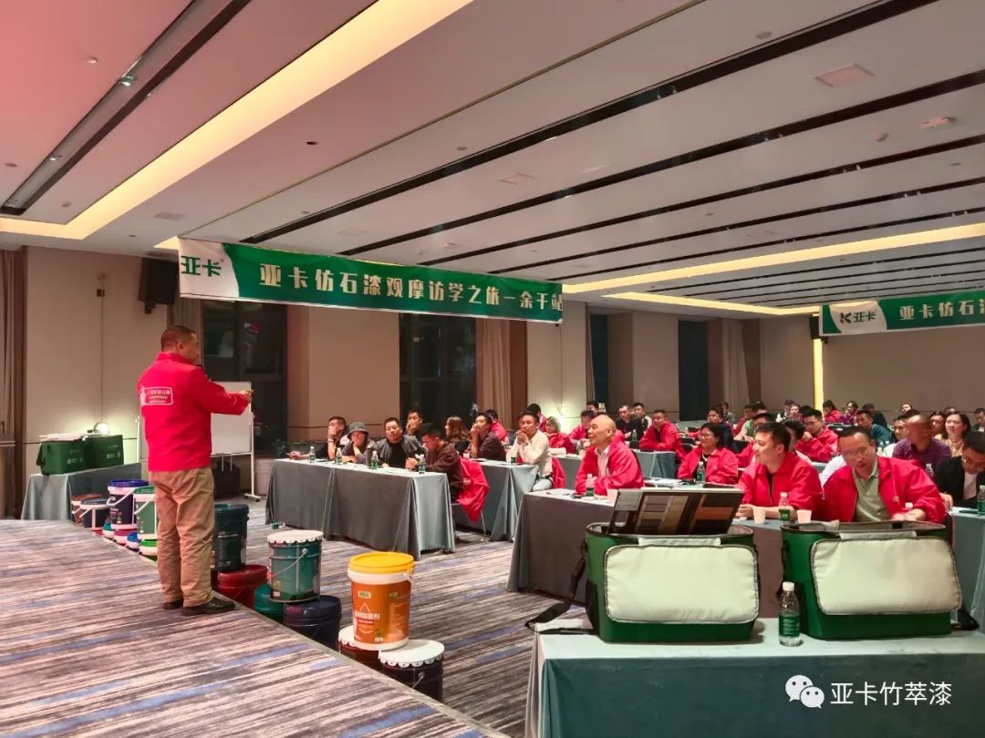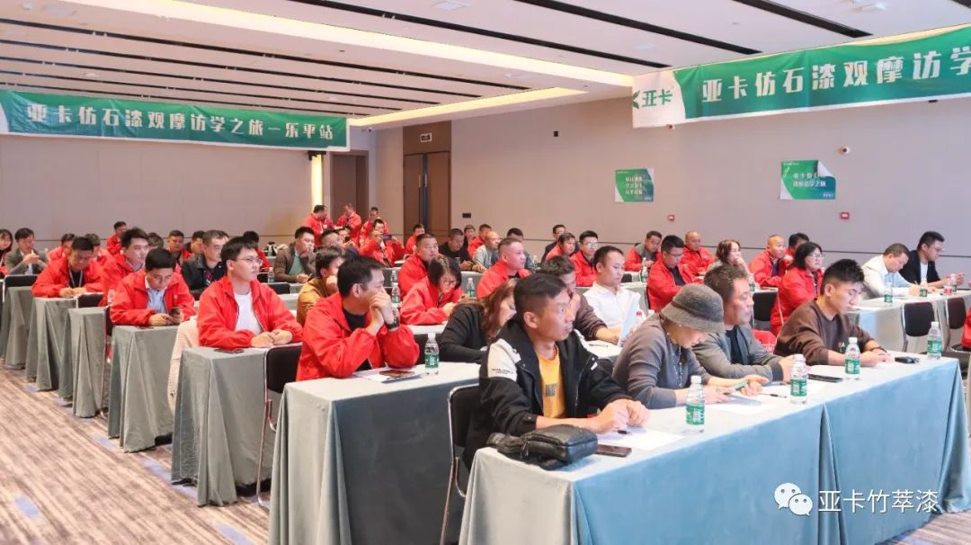 近百位亞卡仿石漆從業(yè)人員,在實地觀摩后,進行了亞卡仿石漆營銷破局之經(jīng)驗交流分享,以眾人之力將亞卡黑馬推向更廣闊的市場。