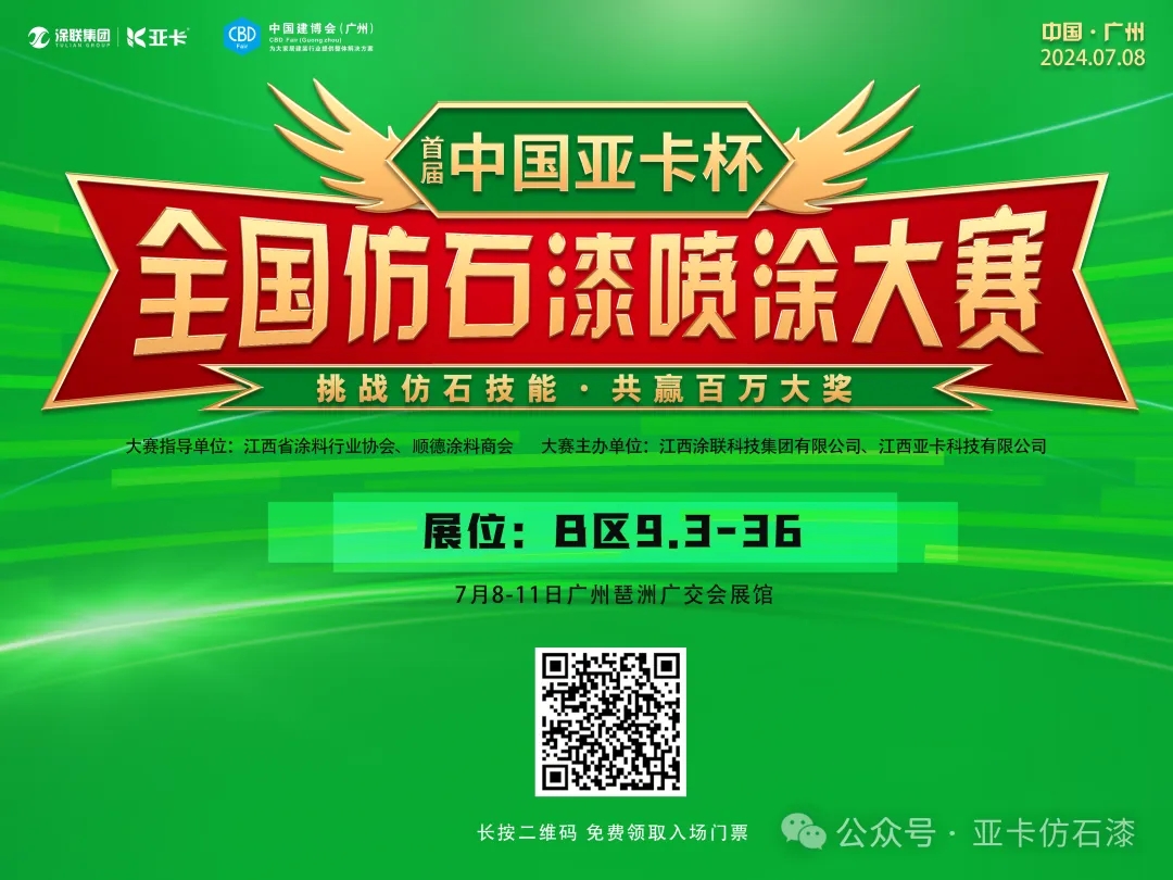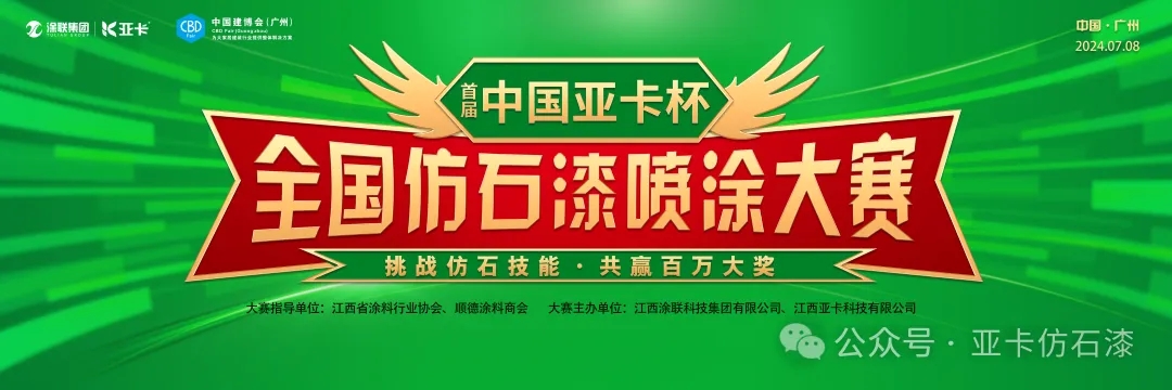 本次大賽由江西省涂料行業(yè)協(xié)會(huì)、順利涂料商會(huì)共同指導(dǎo),江西涂聯(lián)科技集團(tuán)有限公司、江西亞卡科技有限公司主辦。大賽將圍繞質(zhì)感外墻涂裝效果展開激烈角逐,亞卡鉑金石仿石漆、酷彩超石感仿石漆、亞卡亞灰石外墻藝術(shù)涂料將作為大賽指定材料,各參賽區(qū)域用精湛的技藝和獨(dú)特的創(chuàng)意,為大眾呈現(xiàn)出一幅幅精美絕倫的外墻作品。