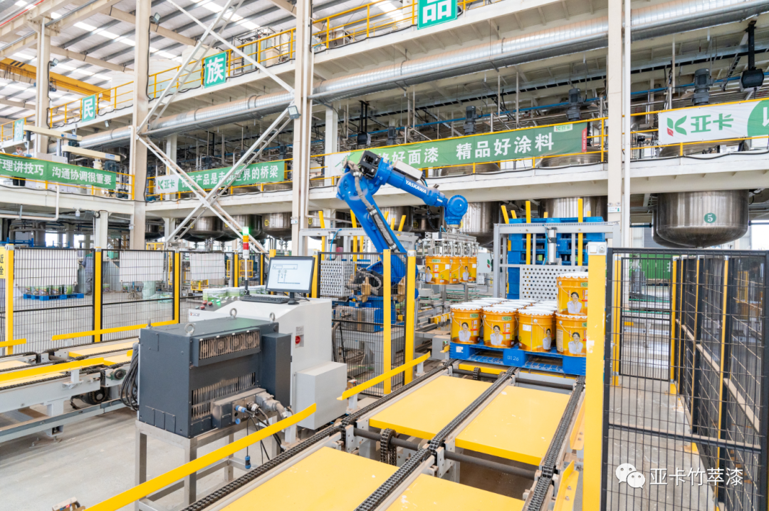 其中亞卡涂料2021年正式投產(chǎn),建成的建筑涂料車間占地13000平方,干粉車間占地12000平方,車間內(nèi)擁有多條全自動(dòng)生產(chǎn)線,通過機(jī)器人、生產(chǎn)線、信息系統(tǒng)的集成應(yīng)用,實(shí)現(xiàn)產(chǎn)品在生產(chǎn)、倉儲、物流全過程的自動(dòng)化、智能化和一體化。